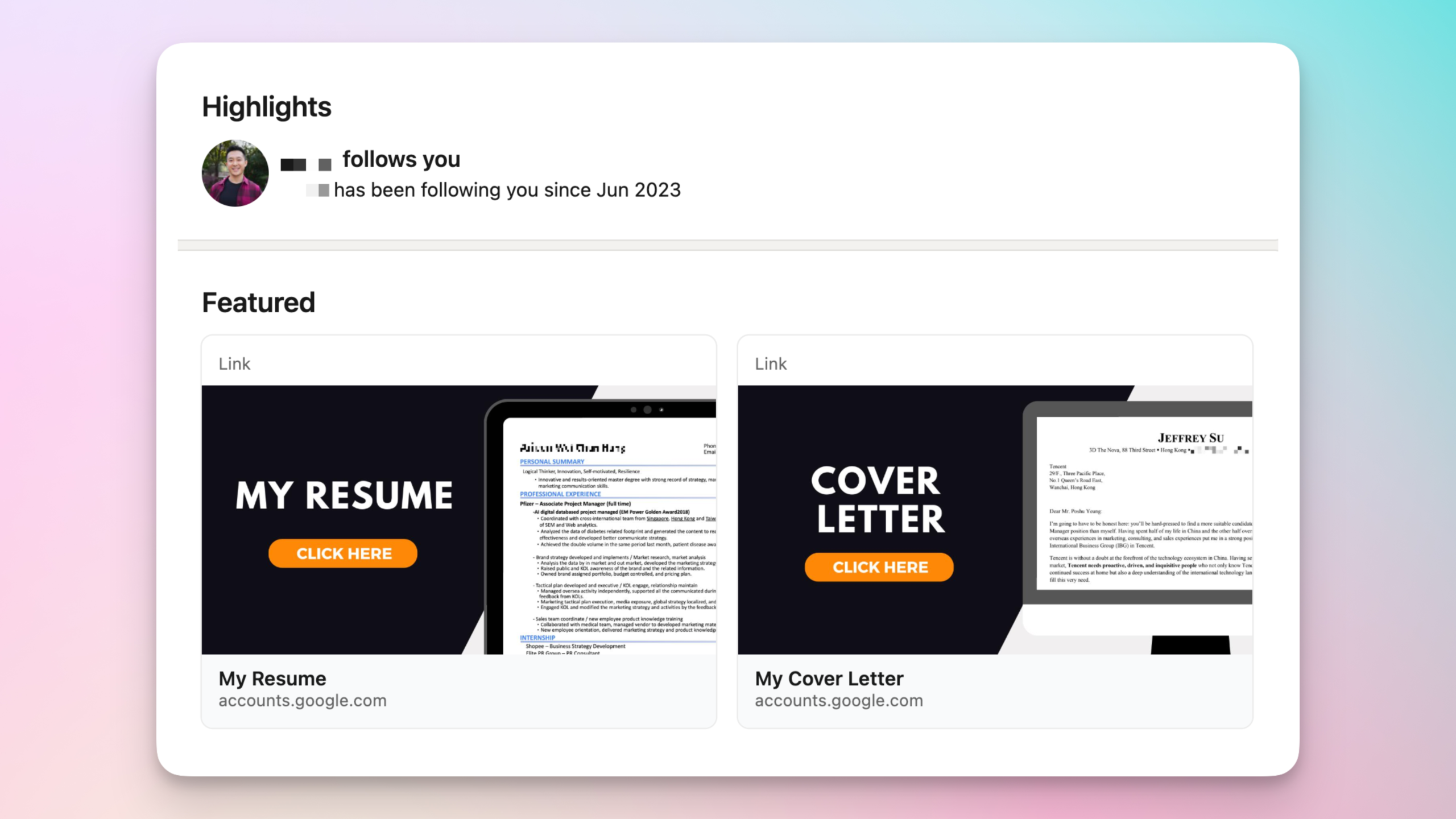 | Cover Letter & Resume | _ | _ |